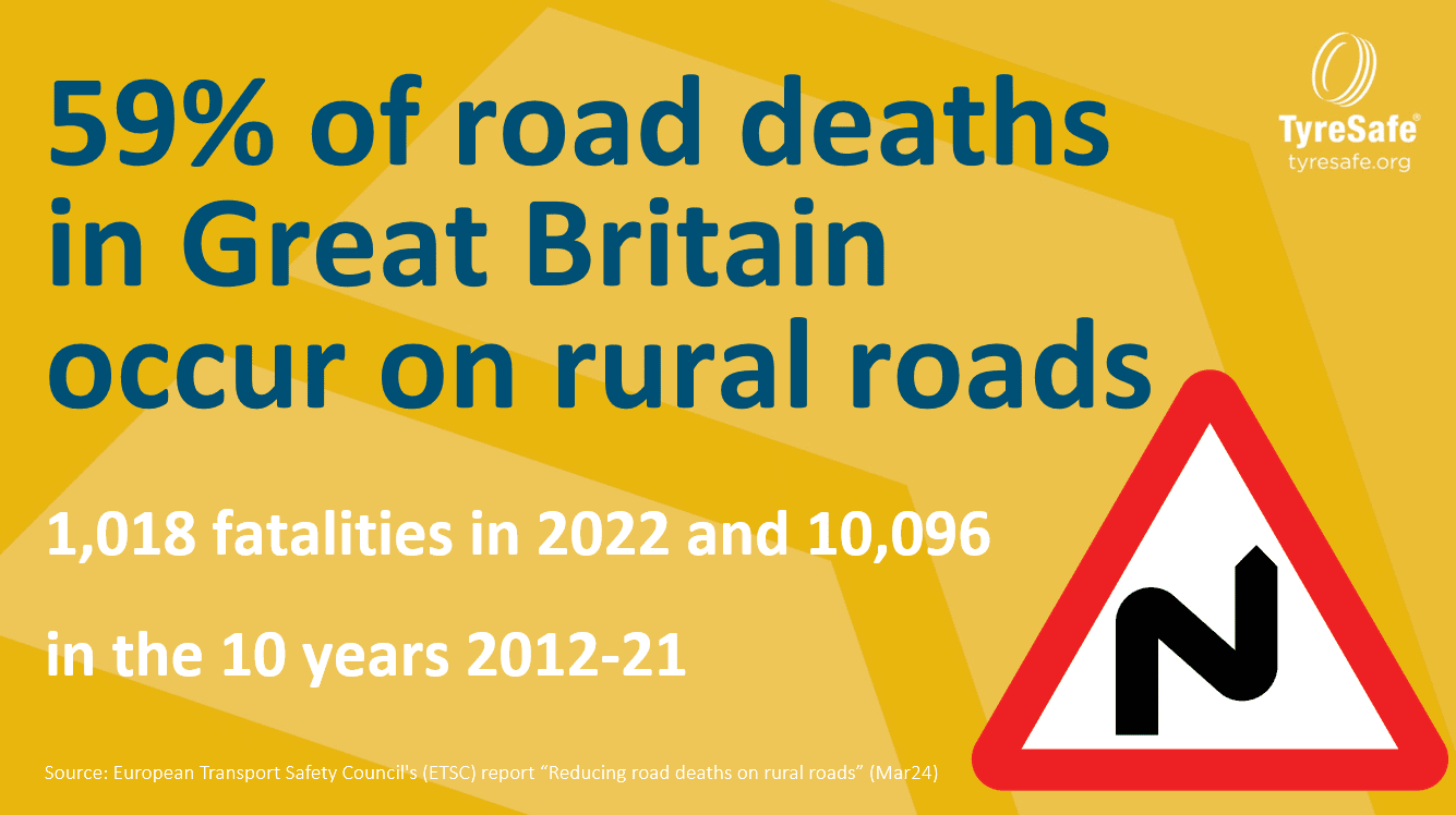 As the summer season draws more drivers to the scenic routes of Great Britain’s rural roads, TyreSafe is highlighting the pressing need for increased tyre safety awareness. A recent report by the European Transport Safety Council (ETSC), highlights that rural roads remain the most dangerous type of roads in the UK, accounting for a staggering 59% of all road deaths in 2022. This translates to over 10,100 fatalities on rural roads over the past decade.